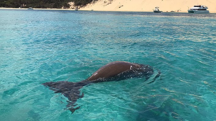 Then head over to the Tangalooma Wrecks where you will start your 50 minute optional extra Guided Snorkeling and Fish Feeding Tour. Please note you MUST be able to swim to participate in this activity and it's $20 extra per person payable on the day.